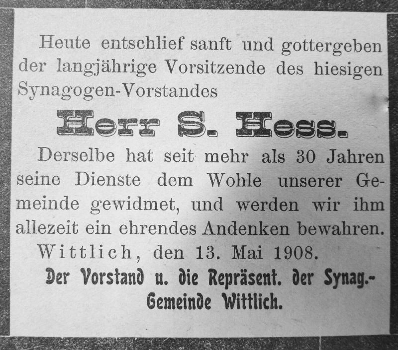 Juden in Wittlich, Maria Wein-Mehs, Beiträge zur Geschichte und Kultur der Stadt Wittlich, 1996, Seite 595, Seite 600