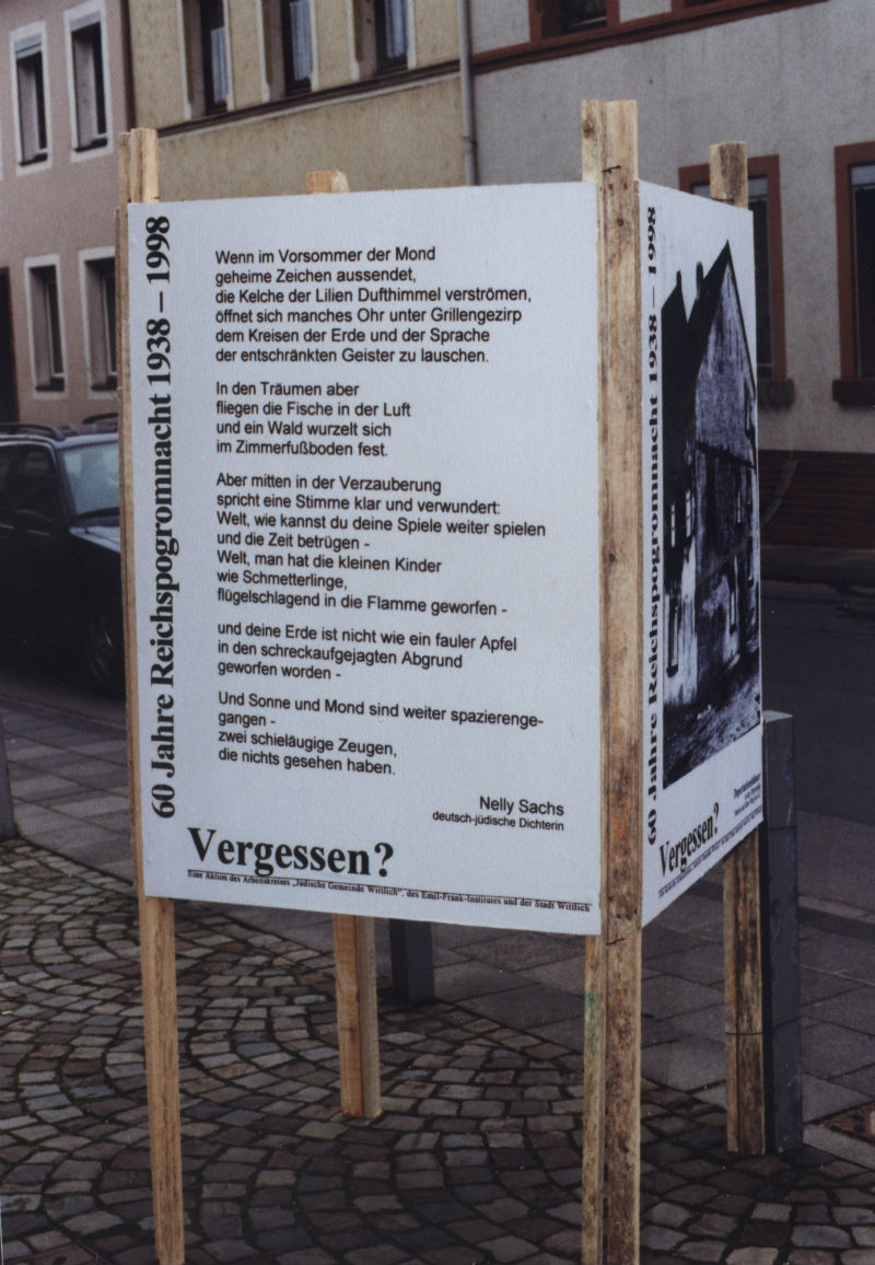 Eine Aktion des Arbeitskreises "Jüdische Gemeinde Wittlich", des Emil Frank Instituts und der Stadt Wittlich 1998.
